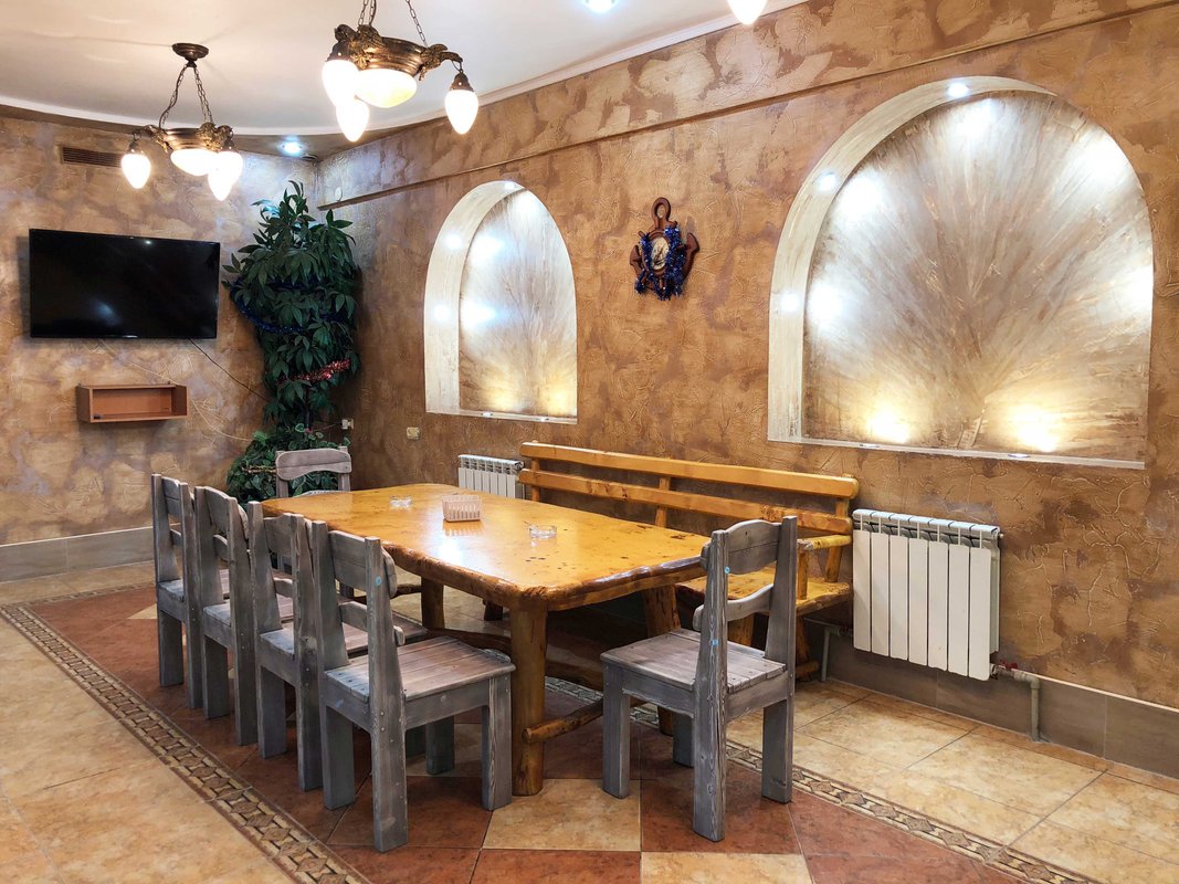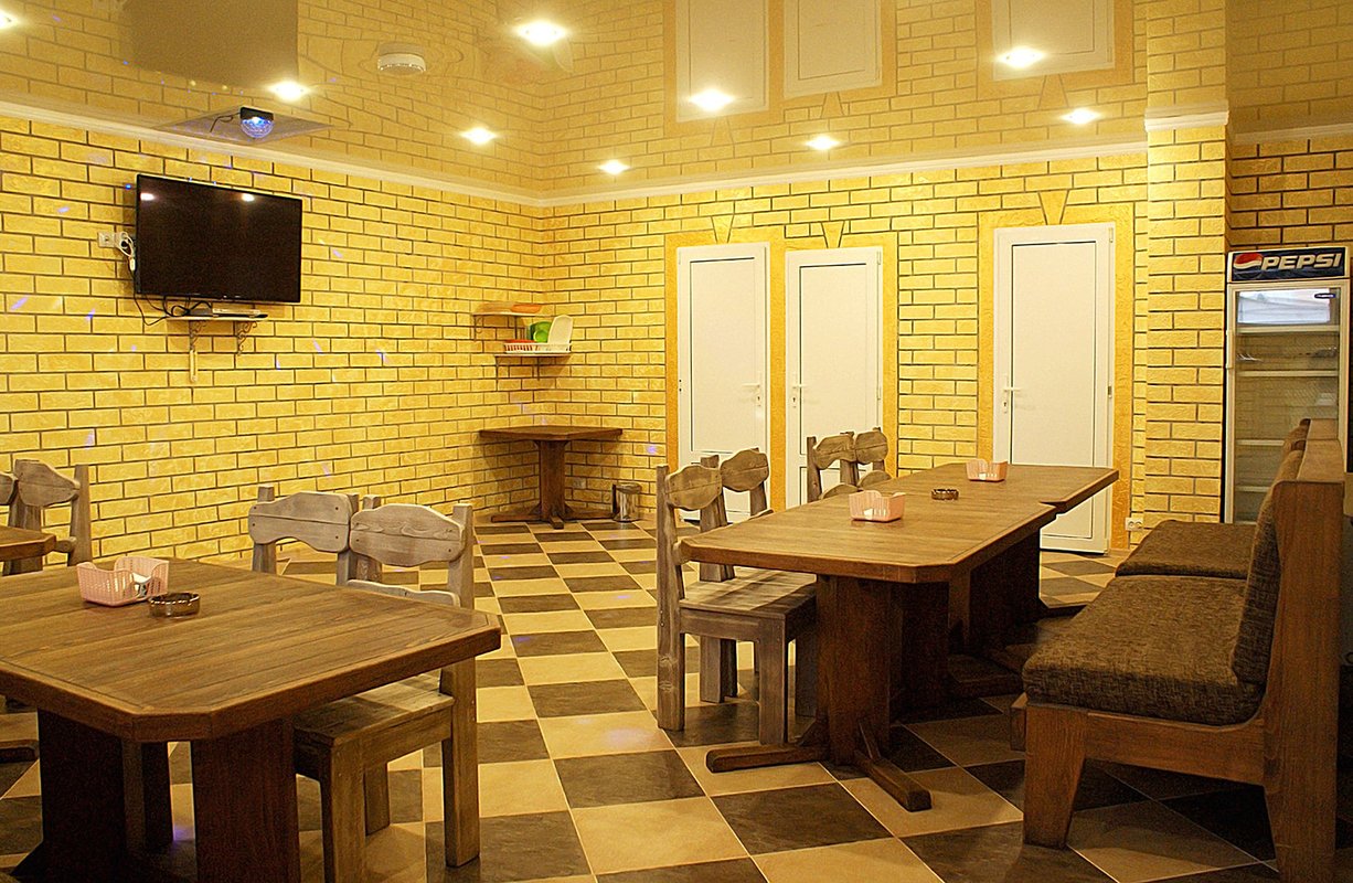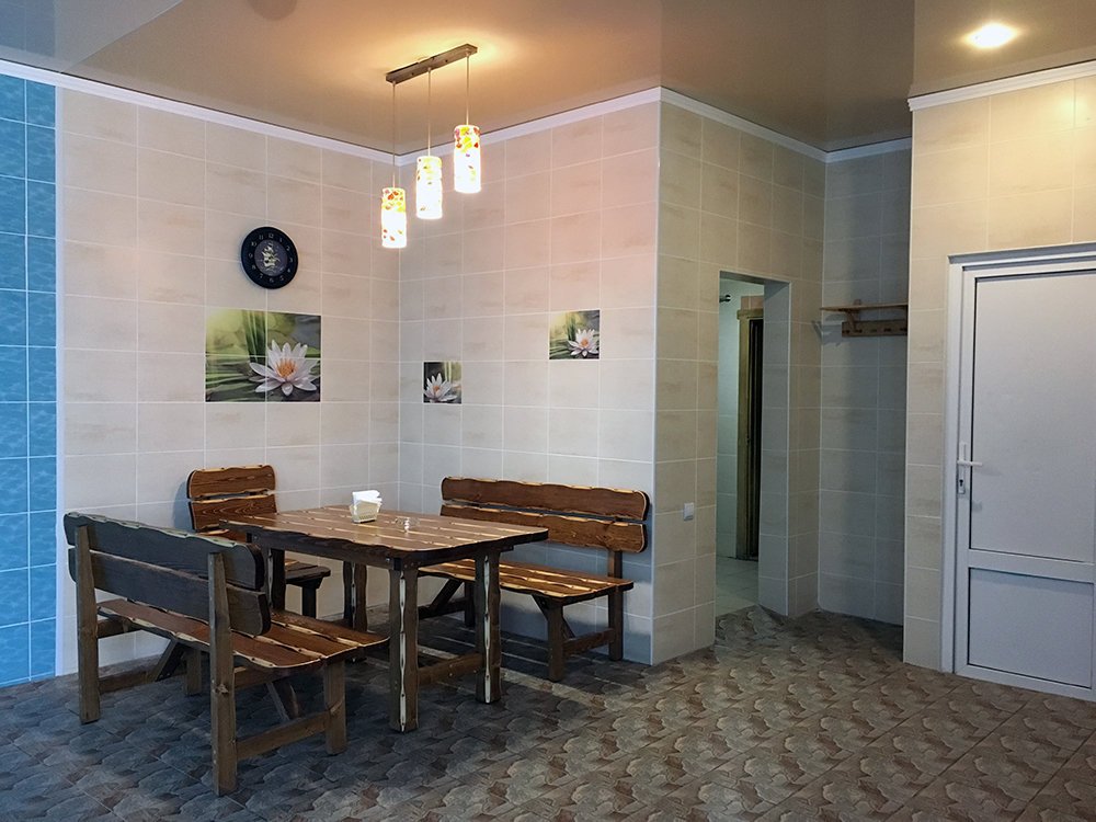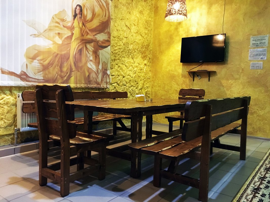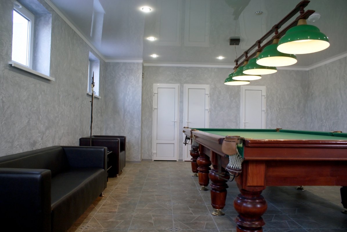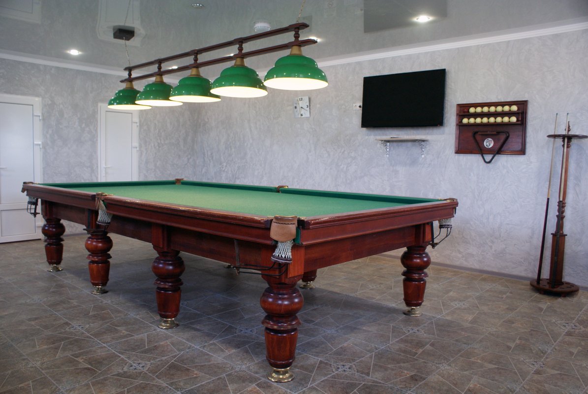 Не хочется в бассейн? Не проблема! Вместо этого можно передохнуть в нашей комнате отдыха. Мы постарались создать здесь комфортный, стильный интерьер из максимально натуральных, экологичных материалов, выбрать мебель, которая будет одновременно удобной и красивой. Надеемся, что он придется вам по душе! Для создания настроения у нас есть бильярд. Также у нас работает бар, где вы можете заказать блюда русской кухни, а если нужно, принести и собственную еду - мы не против! Только не забывайте, что плотная трапеза непосредственно перед посещением парной - это не самая хорошая идея, согласно мнению докторов. А вот после парной - совсем другое дело!